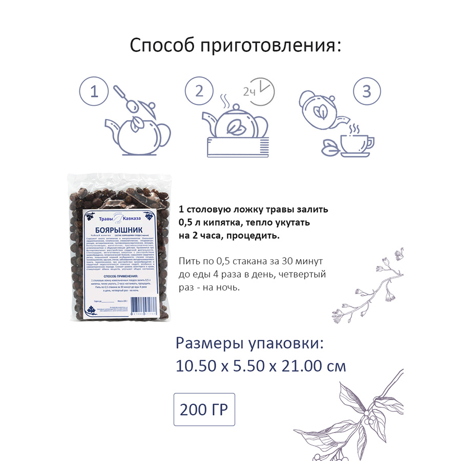Наш боярышник черный собран в экологически чистых районах Кавказа, где он произрастает в естественных условиях. Сбор осуществляется вручную, чтобы сохранить максимальную пользу растения. Высушивание проходит в тени с доступом свежего воздуха. Благодаря этому наш продукт сохраняет все полезные свойства, аромат и природную силу. Выбирая ®Травы Кавказа, вы получаете 100% натуральный продукт высокого качества.