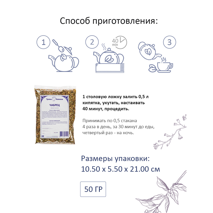 Секрет особой силы чабреца – в условиях произрастания: на солнечных каменистых склонах Кавказа он накапливает в 1.5 раза больше эфирных масел, чем равнинные собратья.