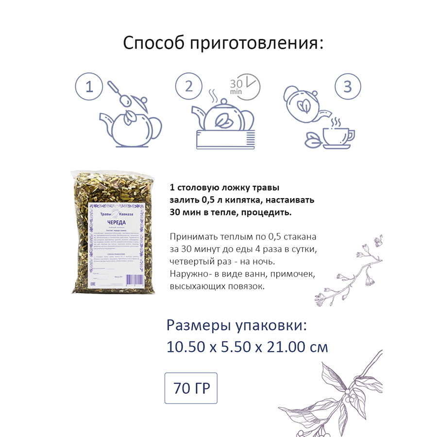 Наша череда собирается в экологически чистых предгорных районах Кавказа, где растение накапливает максимальное количество полезных веществ. Мы используем только верхние части растения, собранные в оптимальный период цветения.