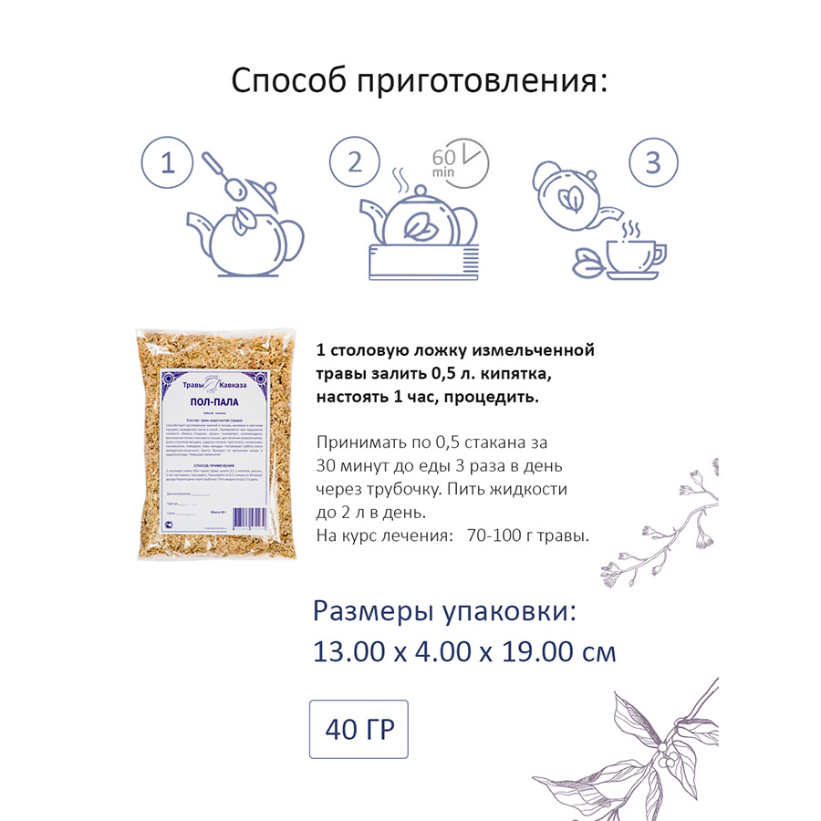 В начале XX века русские врачи, работавшие в Средней Азии, заметили у местного населения необычайно низкую заболеваемость мочекаменной болезнью - оказалось, что они регулярно пили чай из пол-палы. В 1950-х годах советские учёные начали серьёзные исследования этого растения, а в 1992 году оно было официально включено в российскую фармакопею.