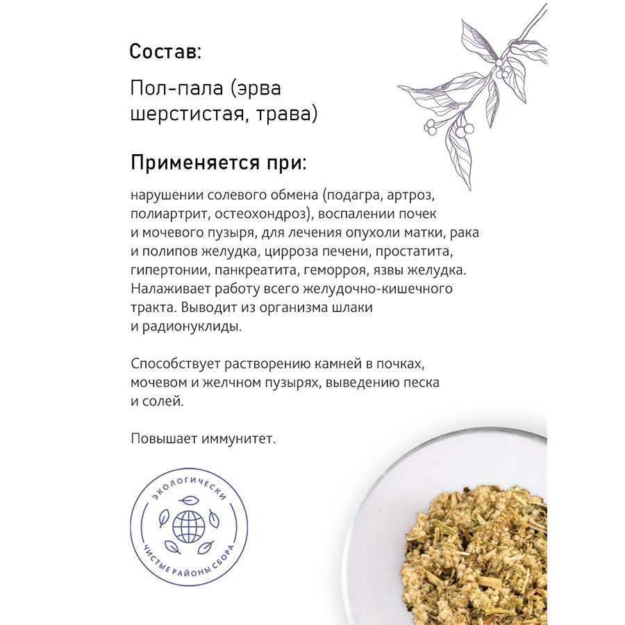 Эрва шерстистая (Aerva lanata) или Пол-пала – удивительное растение, известное как "пол-пала", которое обладает уникальной способностью мягко растворять и выводить камни из организма.