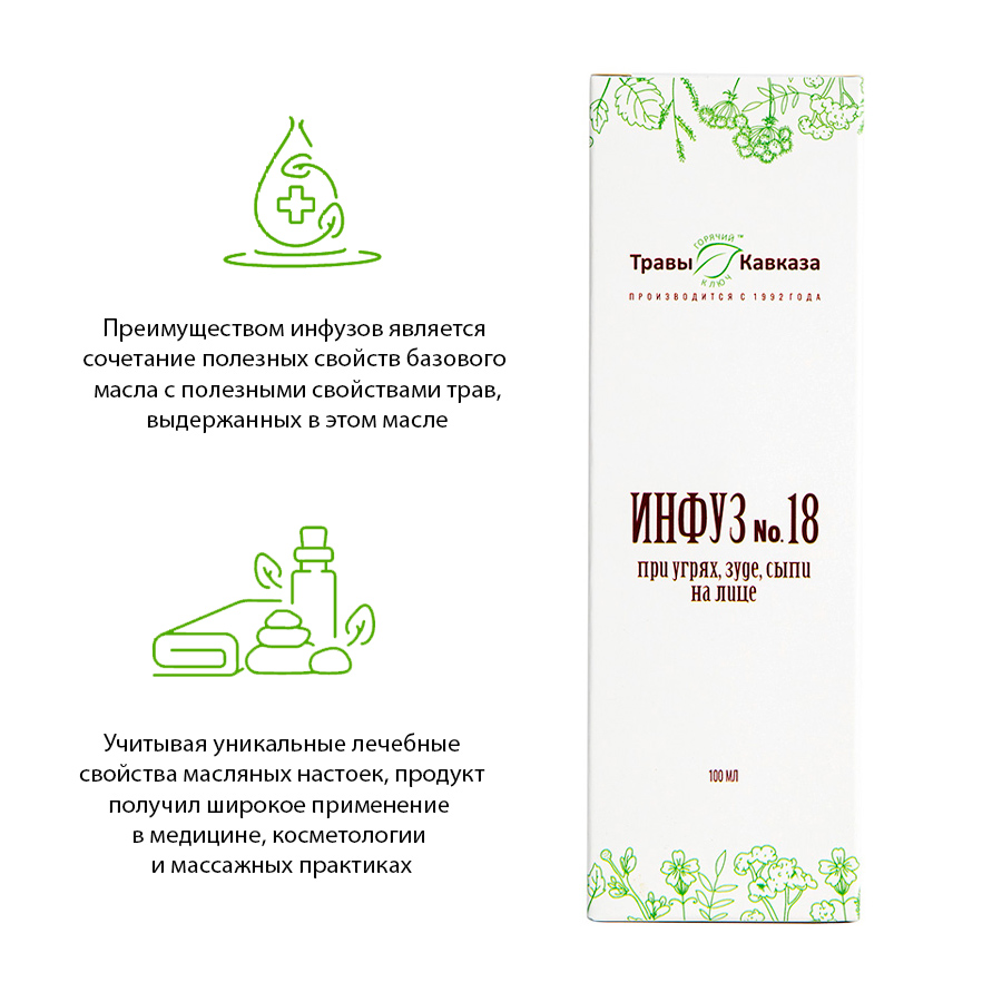 Инфуз №18 — это не просто уход за кожей, это забота, тепло и мягкость природы, которая помогает вашему телу восстановиться и вновь сиять здоровьем.