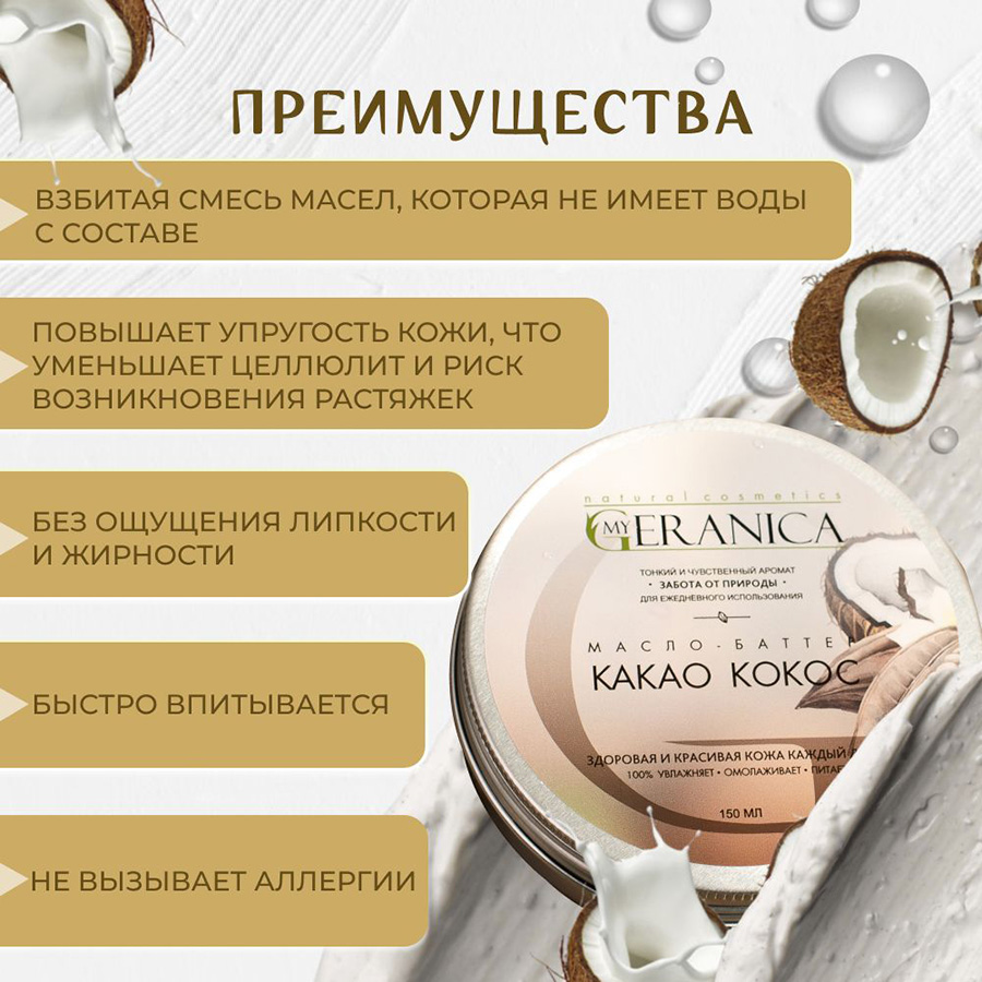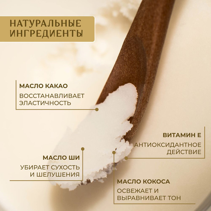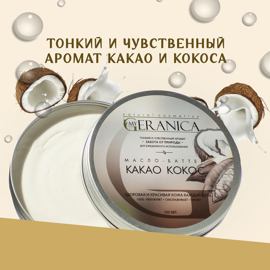 Подарите своей коже натуральную заботу с баттером "Какао Кокос" – и наслаждайтесь гладкостью, мягкостью и здоровым сиянием каждый день!
