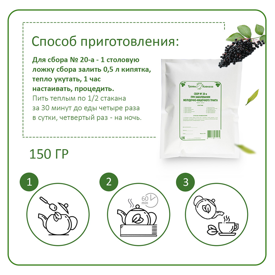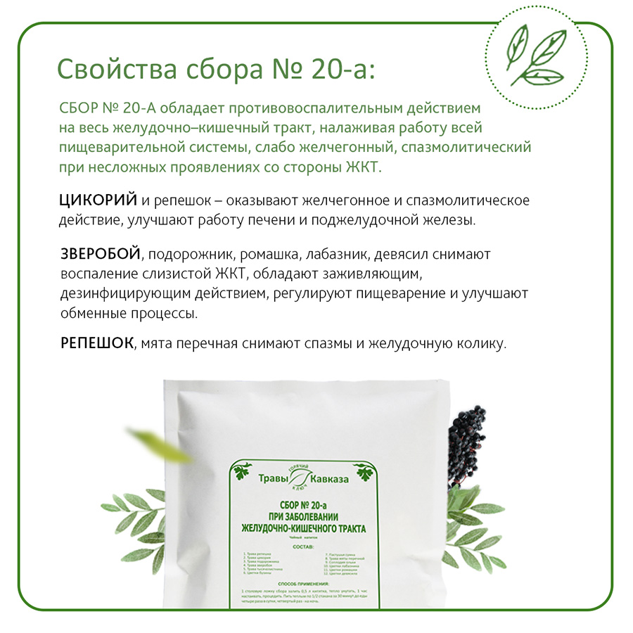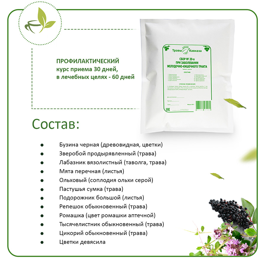 Сбор лекарственных трав из 12 тщательно подобранных компонентов помогает нормализовать работу желудочно-кишечного тракта, снимает воспаление и спазмы, способствует регенерации слизистой и улучшает общее состояние пищеварительной системы. Этот желудочный сбор эффективен при заболеваниях желудочно-кишечного тракта на начальных стадиях, нарушениях работы ЖКТ, вызванных внешними факторами, а также для нормализации пищеварительных процессов. Подходит как для взрослых, так и для детей.